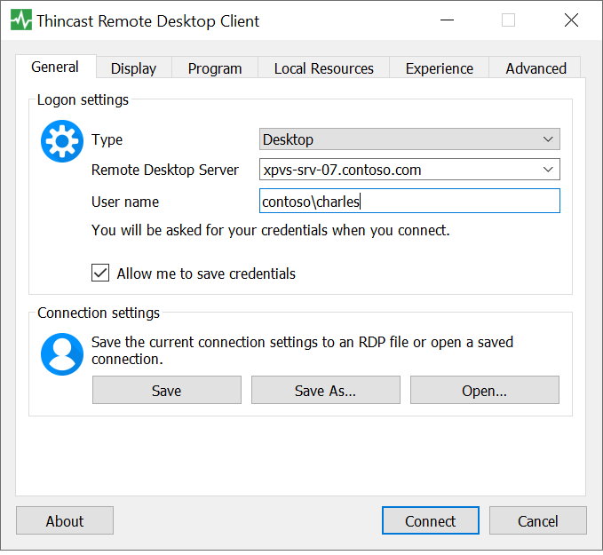 Linux, macOS ve Windows için Thincast Uzak Masaüstü İstemcisi ile XP/VS Terminal Sunucusuna bağlanın.